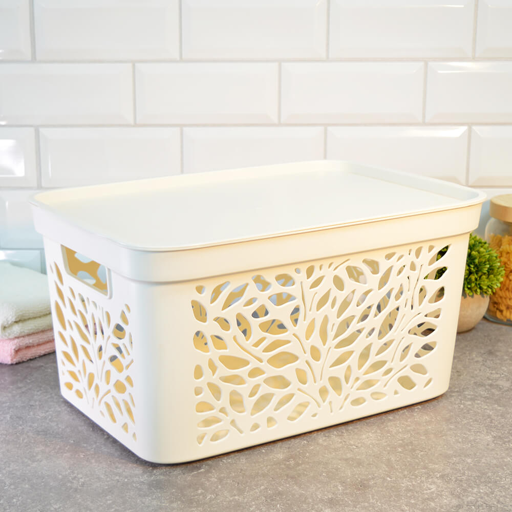 Корзина 18л с крышкой "Leaves" 405*275*207мм, молочный