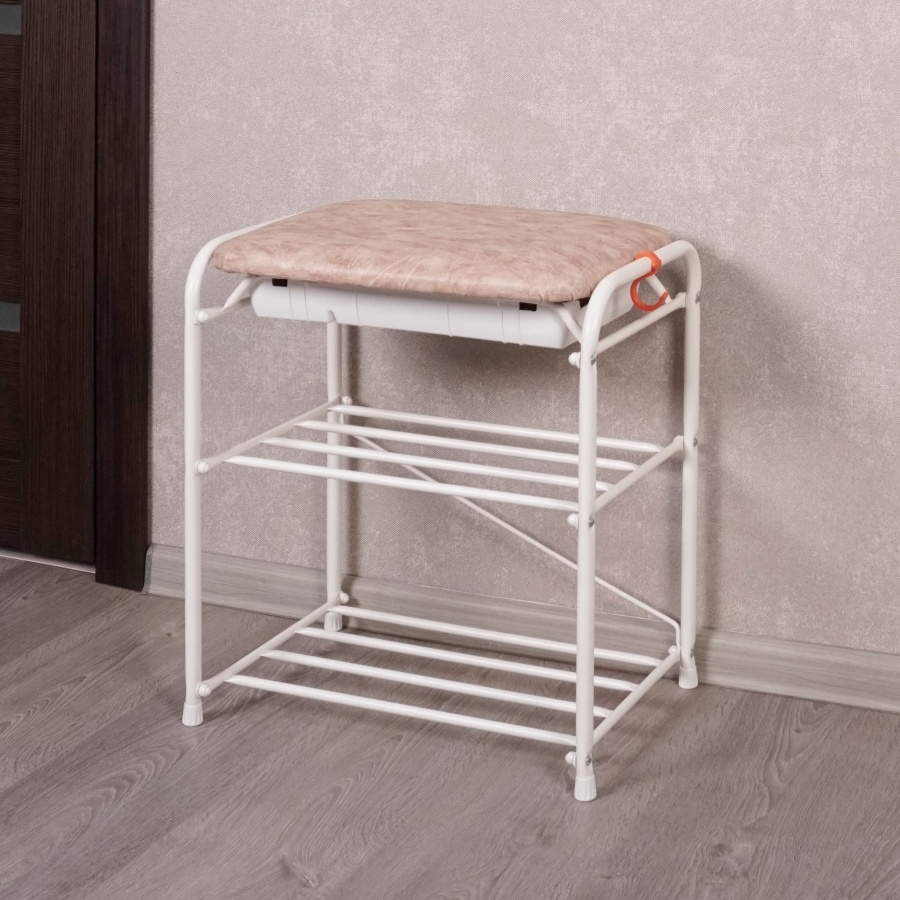 Подставка для обуви "Альфа 13" с сиденьем и ящиком, белая