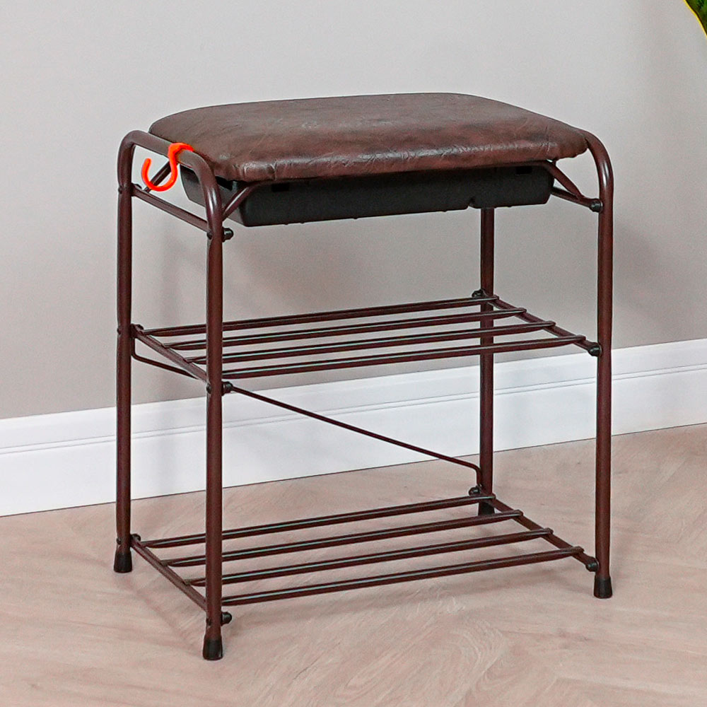 Подставка для обуви "Альфа 13" с сиденьем и ящиком, коричневая