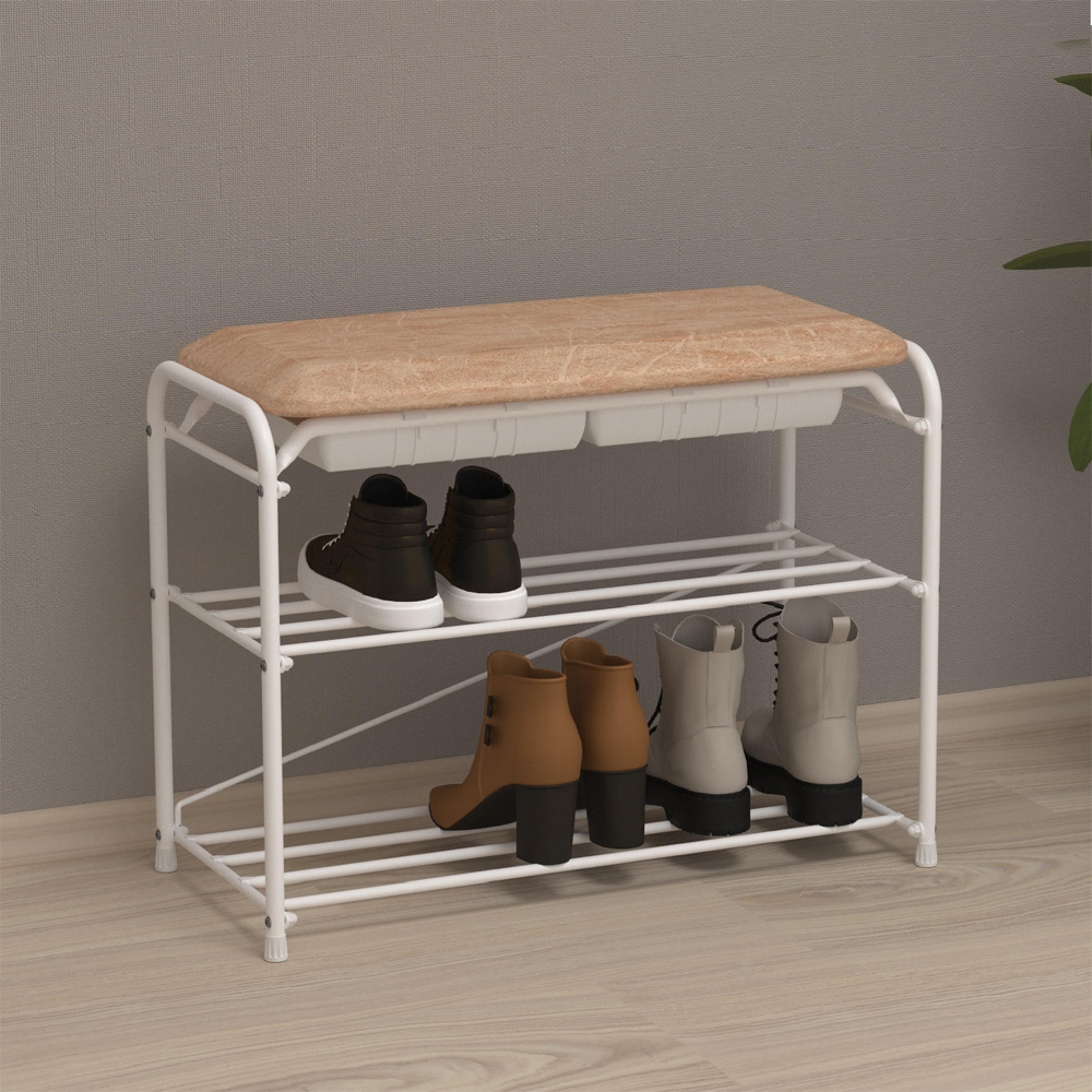 Подставка для обуви "Альфа 23" с сиденьем и ящиком, белая