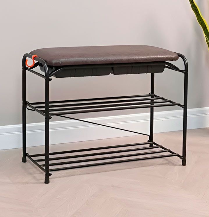Подставка для обуви "Альфа 23" с сиденьем и ящиком, черная