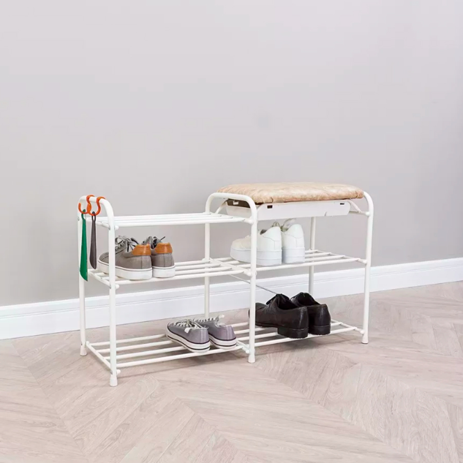 ОГтличное решение для компактного хранения обуви в доме или офисе.Этажерка поможет легко организовать пространство и аккуратно хранить обувь, а классический дизайн впишется в любой интерьер.Сиденье из прочной фактурной винилискожи обладает повышенной износоустойчивостью. Под сиденьем расположен ящик для мелочей.Размер - 89х30х48 см.Заключаем договора по 44 ФЗ, 223 ФЗ