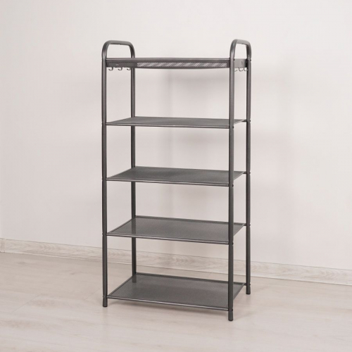 Подставка для обуви "Верона 25" графит создана для компактного хранения обуви в доме или офисе. Долговечная, благодаря каркасу и полкам из стали. 4 полки вместят до 8 пар обуви, а продуманные расстояния между ними позволят разместить как летнюю, так и зимнюю обувь. Каждая полка выдерживает нагрузку до 8 кг.Верхняя корзина позволяет разместить разные мелочи, а боковые крючки – ложку для обуви и ключи.Подставку можно использовать не только для хранения обуви, но и как стеллаж для прочих предметов.Размер - 65х30х95 см.Заключаем договора по 44 ФЗ, 223 ФЗ