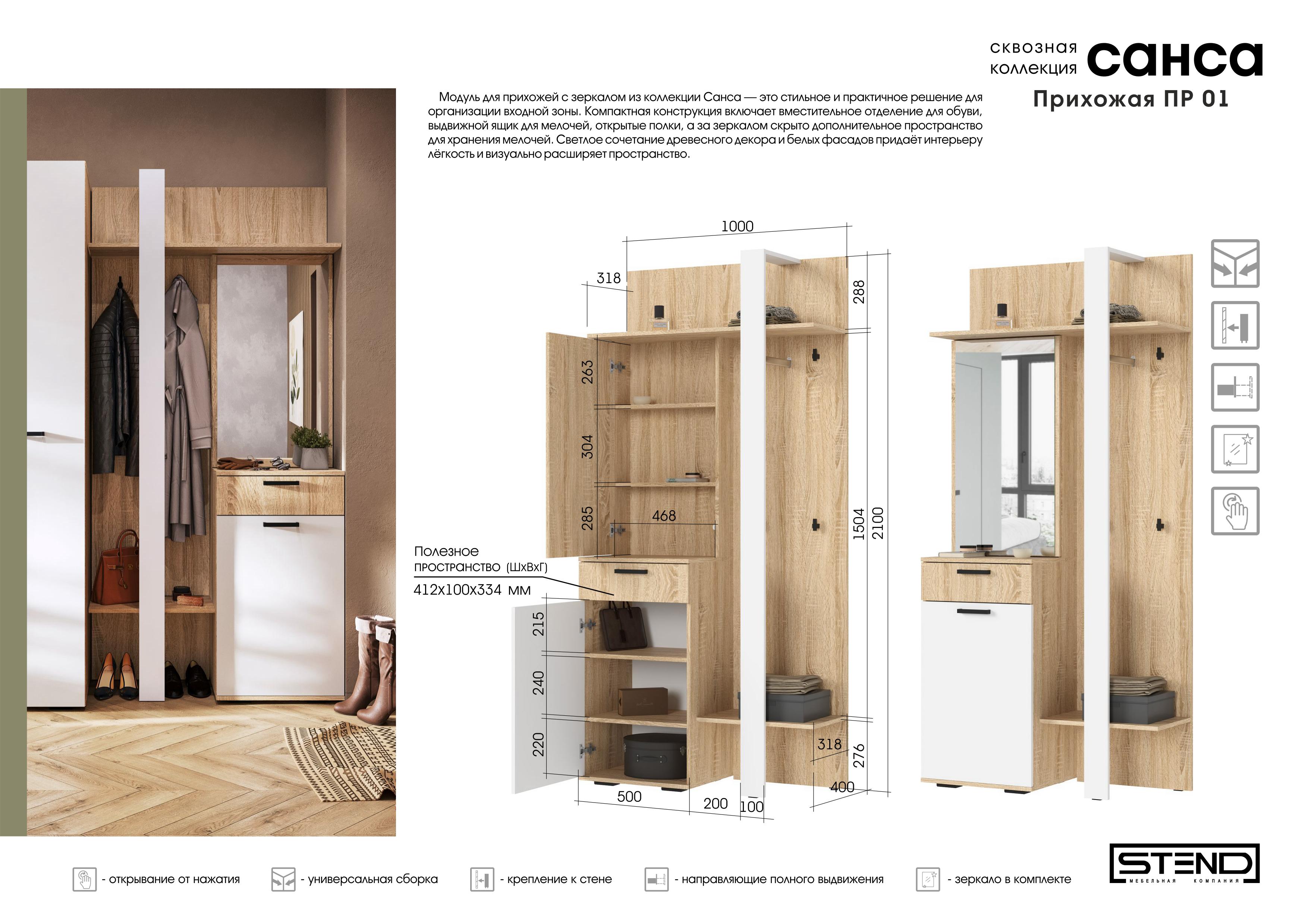 САНСА ПР-01 Прихожая (1000х2100х400) ////////// САНСА ПР-01 Прихожая ////////// 72 кг ////////// 7 938р.