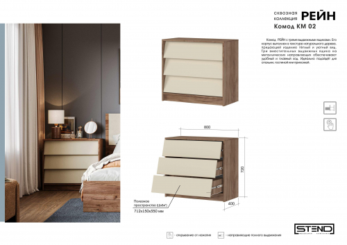 РЕЙН КМ 02 Комод 800 (800х720х400) ////////// РЕЙН КМ 02 Комод 800 ////////// 41 кг ////////// 4 150р.