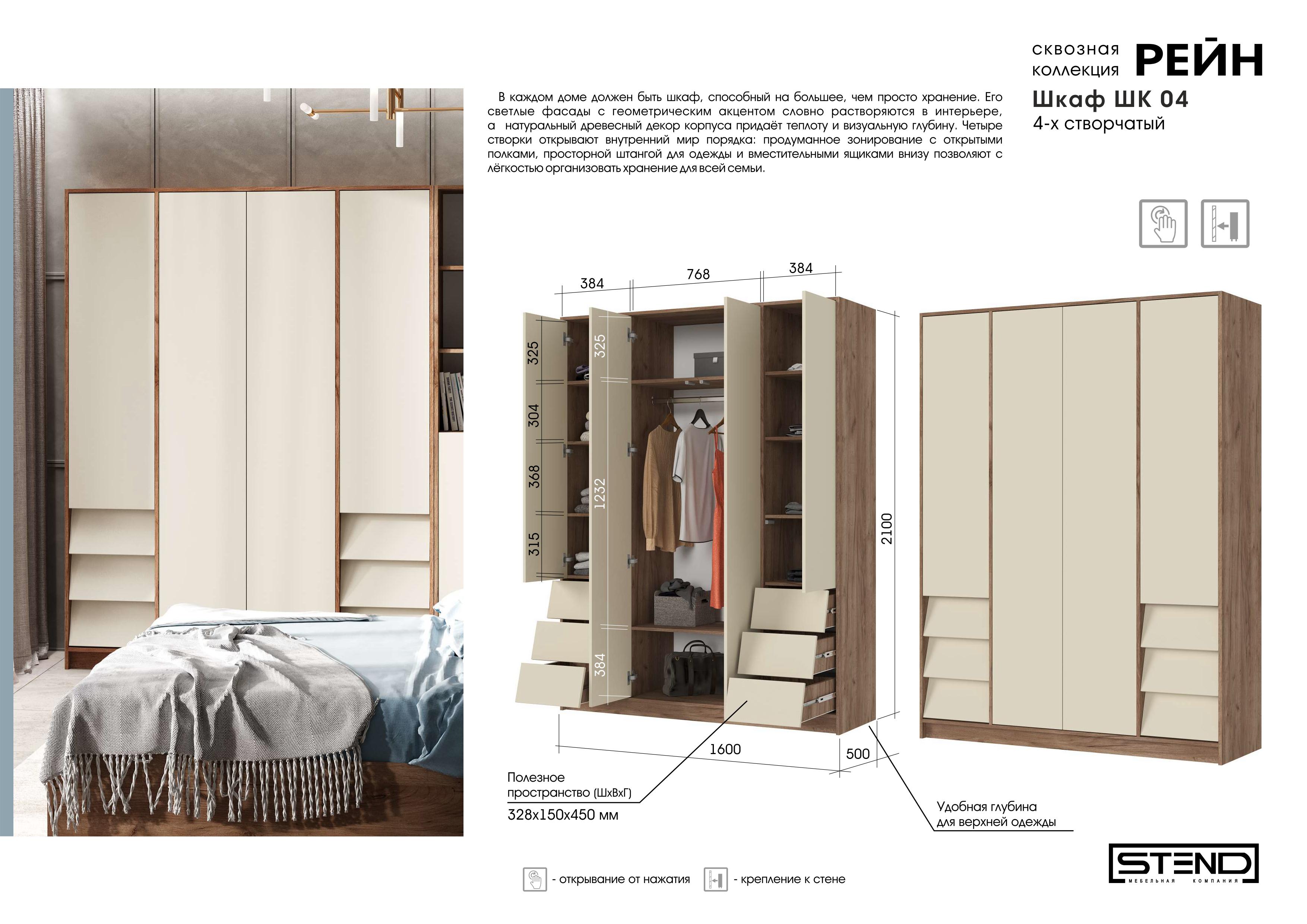 РЕЙН ШК 03 Шкаф 4-х створчатый (1600х2100х500) ////////// РЕЙН ШК 03 Шкаф 4-х створчатый ////////// 163 кг ////////// 18 275р.