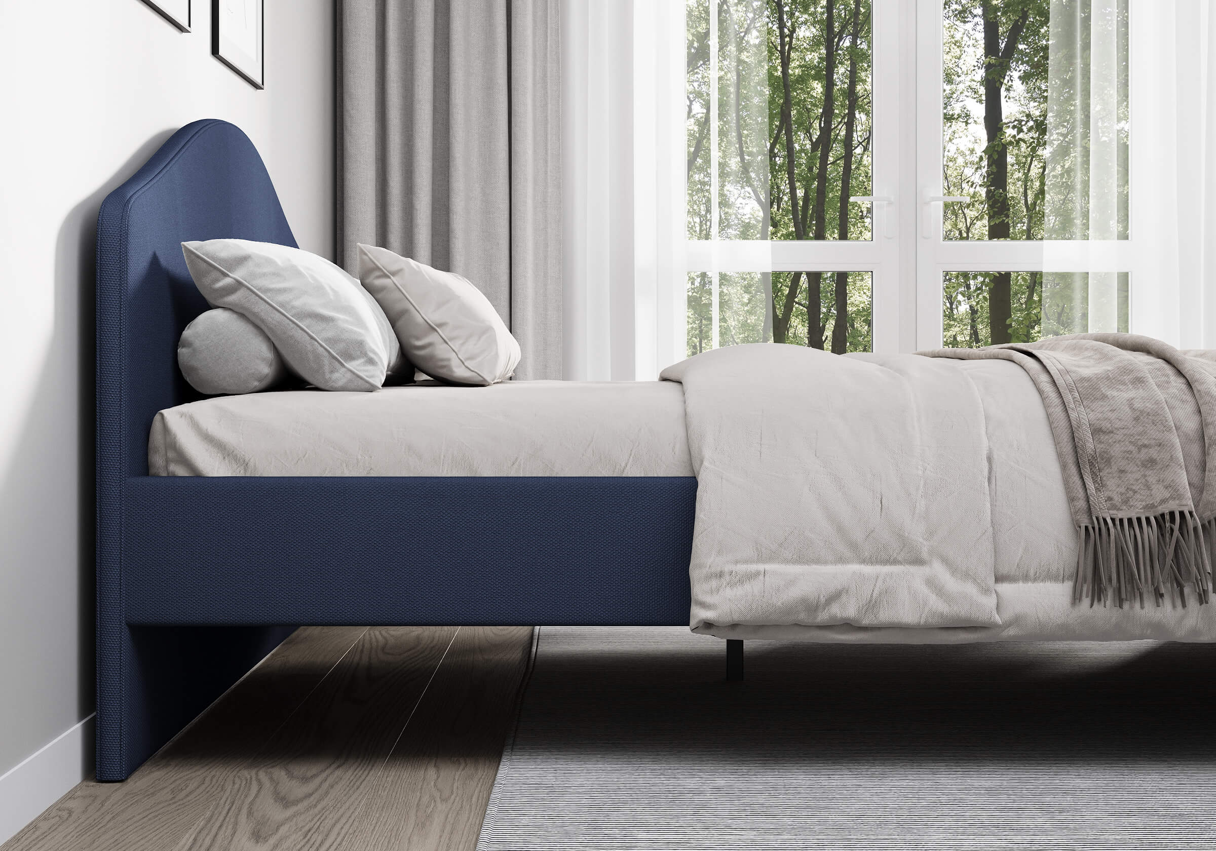 1) Кровать Emma, в зависимости от ткани обивки, будет актуальна для спален в классическом стиле, современном и скандинавском. Например, в обивочной ткани рогожка модель подойдет для интерьера в скандинавский стиле, а в велюре органично впишется в классический стиль. Мягкое изголовье с изгибом, плавные линии изножья, узкие царги делают кровать запоминающейся и уютной. Увеличенное расстояние до царг способствует легкой уборке, а также позволяет дополнительно приобрести выкатную тумбу или ящики для хранения вещей. Модель укомплектована ортопедическим основанием с ламелями.