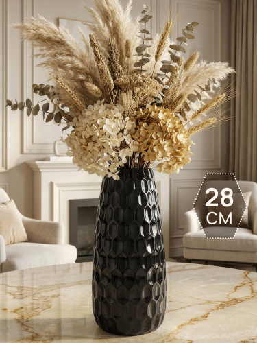 БЫЛО 1026 руб! Ваза 28 см 2,5 л "Соты" черная матовая