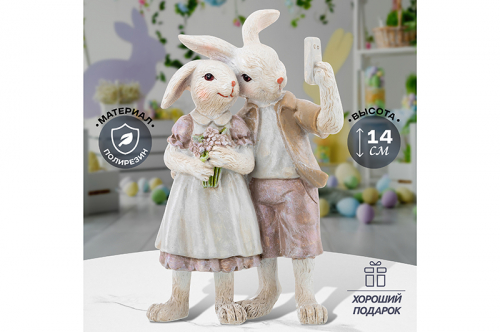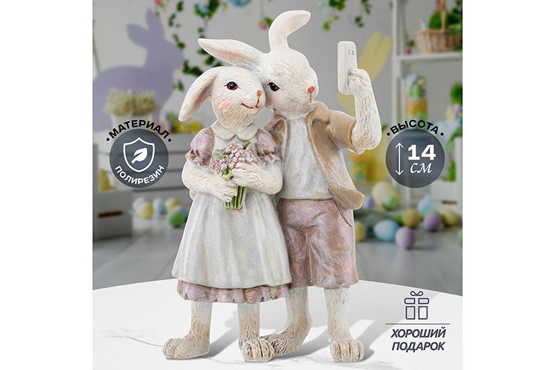 БЫЛО 1100 руб! Фигурка декор. 9*4,5*14 см "Сэлфи кроликов"