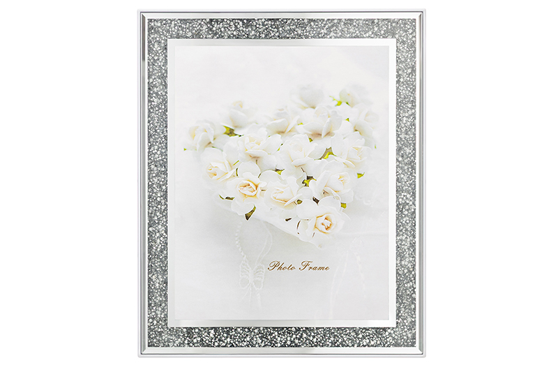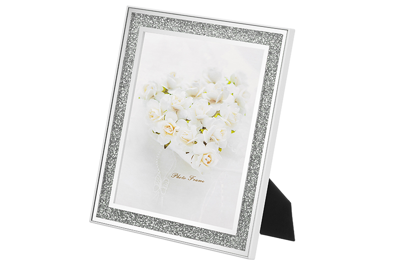 Настольная фоторамка от бренда ELCASA "Бриллиант" рассчитана на фото форматом 20х25 см. Размер рамочки – 29,5х24,5х1,5 см. Прямоугольный каркас белого цвета изготовлен из пластика, вся передняя часть выполнена из стекла. Чтобы открыть стеклянную рамочку, необходимо вытащить с обратной стороны картонную вставку. Рамка устанавливается на столик благодаря устойчивой картонной подставке с обратной стороны. За стеклянной поверхностью имеет блестящий серебристый декор, напоминающий алмазную россыпь. Изделие украшено контрастными серебряными линиями, образующими прямоугольники. Рамочка станет стильным предметом декора и позволит разместить ваши свадебные или семейные фотографии. Можно использовать как оправу под открытки, вышивки крестиком, маленькие постеры или детские рисунки. Разместите оригинальную рамку со стразами на столе или полке в спальне, гостиной, прихожей или любой другой комнате, чтобы наполнить дом теплом и уютом. Не рекомендуется применять абразивные моющие средства. Станет чудесным подарком на любой праздник. Фоторамка для семейных фото – прекрасный сюрприз для влюбленных на свадьбу или годовщину. Это отличное решение, чтобы украсить дом фотографиями, которые напоминают о самых светлых моментах. Декоративная рама для фото украсит интерьер любого пространства и наполнит его теплом приятных воспоминаний!