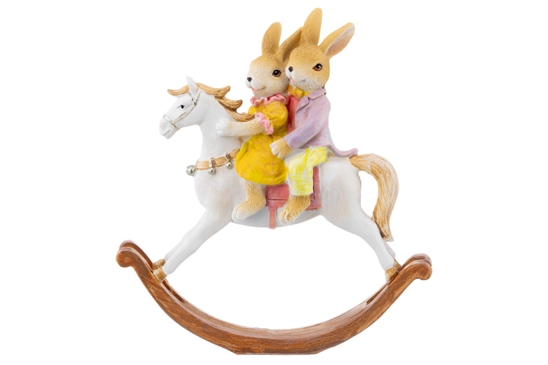 БЫЛО 1143 руб! Фигурка декор. 13*4*14,5 см "Кролики на лошадке-качалке"