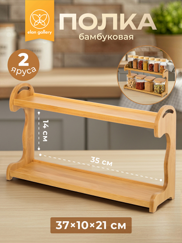 Двухъярусная подставка от Elan Gallery предназначена для эстетичной подачи к столу закусок и угощений. Выполнена из натурального бамбука. Общий размер изделия – 37х10х21,5 см. Внутренний размер нижней полки – 35х8,5х1,5 см, внутренний размер верхней полки – 35х7х1,5 см. Расстояние между ярусами – 14,5 см. Полочки подойдут для размещения банок и ёмкостей со специями, а также столовых приборов. Кроме того, изделие можно использовать для сервировки закусок в качестве необычной этажерки. Благодаря внутренним выемкам на каждом ярусе можно разместить тарталетки, нарезку из сыра и мяса, а также небольшую выпечку. Подойдут для фруктов и ягод – выложите на них виноград или клубнику. Используйте подставку в качестве необычной конфетницы: разложите зефир, мармелад или другие сладости. Заполните орехами, сухофруктами, оливками и маслинами. Натуральный цвет дерева и необычная форма гармонично впишут многоярусную настольную этажерку в интерьер любой столовой. Органайзер станет функциональным и декоративным элементом семейных и дружеских застолий. Не рекомендуется применять абразивные моющие средства. Не подходит для замачивания, использования в посудомоечной машине и микроволновой печи. После мытья тщательно протрите поверхность сухой тканью. Храните вдали от нагревательных приборов при нормальном уровне влажности. Поставляется в дизайнерской картонной коробке – благодаря ей вам не потребуется дополнительная подарочная упаковка. Универсальный инвентарь станет оригинальным подарком для каждого, кто ценит не только практичность, но и привлекательность. В коллекции бренда Элан Галерея вы найдёте разнообразную столовую утварь, которая поможет сделать сервировку удобной и стильной!
