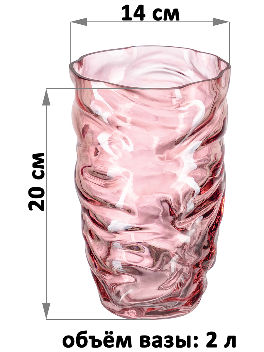 БЫЛО 1209 руб! Ваза 14*14*20 см 2 л, розовая, стекло