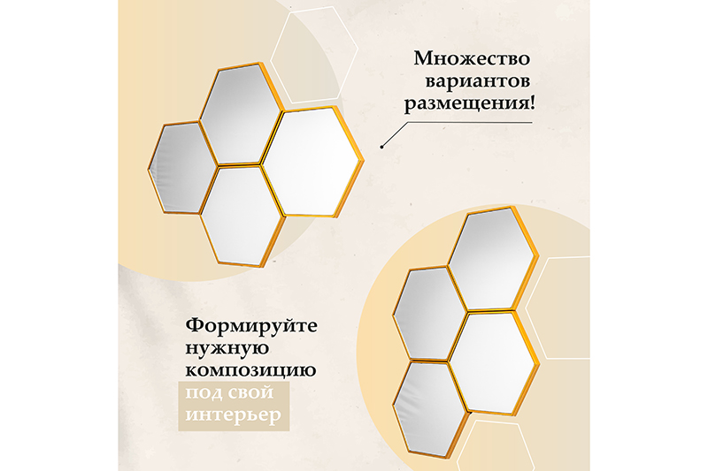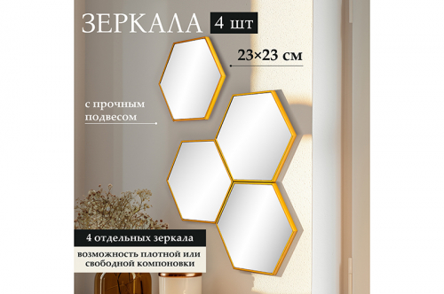 БЫЛО 1211 руб! Набор из 4-х интерьерных зеркал 23*23*1,2 см "Соты" с подвесом. пластик