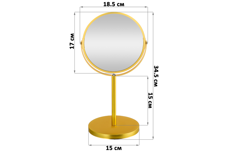 Двустороннее круглое зеркало от ELCASA имеет сторону со стандартным отражением и сторону с двукратным увеличением. Общий размер изделия с подставкой – 18,5х15х34,5 см, размер подставки – 15х15х1,5 см. Длина ножки – 15 см (не регулируется по высоте). Диаметр зеркальной поверхности – 17 см. Угол наклона регулируется, изделие вращается на 360 градусов. Увеличивающая сторона обеспечит удобство при проведении косметических процедур. Компактное настольное зеркальце элегантного золотистого цвета станет функциональным аксессуаром и стильным дополнением вашего дома. Разместите его на туалетном столике или полке в своей спальне или ванной комнате. Поставьте на тумбочку рядом с косметическими принадлежностями, чтобы держать всё необходимое под рукой. Зеркальце станет помощником при ежедневном туалете, нанесении макияжа или масок для лица. Мужчинам подойдёт для бритья. Универсальный аксессуар будет удобным элементом инвентаря визажистов и гримёров. Не рекомендуется применять абразивные моющие средства. Поставляется в дизайнерской картонной коробке – благодаря ей вам не потребуется дополнительная подарочная упаковка. Крутящееся зеркало станет отличным подарком для женщин и мужчин, а универсальный дизайн впишет его в любой интерьер. Двустороннее зеркальце с увеличительной стороной от бренда ЭЛЬКАСА послужит стильным элементом декора для интерьера вашего дома и поможет поддерживать вашу красоту в течение дня!