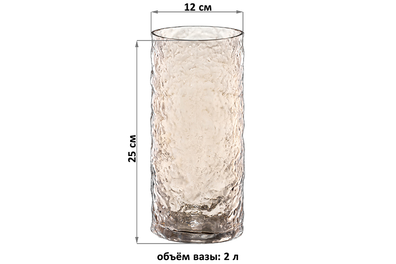 Ваза ручной выдувки от Elan Gallery послужит эстетичным и функциональным дополнением вашего интерьера. Размер ёмкости – 12х12х25 см, объём – 2 литра. Выполнена из стекла. Полупрозрачная ваза с эффектом «мятой» поверхности имеет серый цвет. Широкое утолщённое дно обеспечивает устойчивость вазы. Она вместит даже пышный букет или цветочную композицию. Подойдёт для букетов на длинных стеблях, а также декоративных ветвей. Изделие станет прекрасным элементом декора вашей гостиной, спальни или прихожей, наполнив дом атмосферой гармонии и уюта. Это отличный вариант для живых и искусственных веток и цветков, а также для сухоцветов. Поставьте в неё букет из свежих тюльпанов, пионов и роз. Расположите веточки вербы, чтобы привнести изысканность в квартиру, студию или загородный дом. Изящная ваза добавит утончённости и красоты в оформление любого праздника или вечеринки. Стеклянная ёмкость прекрасно смотрится даже без наполнения. Не рекомендуется применять абразивные моющие средства. Не подходит для использования в посудомоечной машине. Поставляется в картонной коробке. Красивая ваза – отличный подарок для тех, кто ценит стиль и практичность. Она прекрасно дополнит ваш интерьер и станет ценным подарком для родных, близких и коллег. В коллекции бренда Элан Галерея есть всё необходимое для эстетичного преображения дома, офиса и дачи!