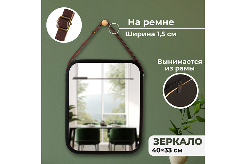 Настенное зеркало на ремне от бренда ELCASA станет украшением домашнего интерьера квартиры или дачи, а также позволит следить за вашей красотой в течение дня. Размер 40,5х33х1,5 см. Большое интерьерное зеркало прямоугольной формы имеет прочный ремешок для подвешивания на стену или дверь, что позволяет без труда разместить его в спальне или прихожей. Длина ремня 1 метр, ширина ремня 1,5 см. Рама чёрного цвета выполнена из натурального бамбука. При необходимости зеркальце можно извлечь из деревянной рамки, чтобы заменить на новое. Это функциональная вещь, которую можно повесить на стенку над комодом, туалетным столиком или в коридоре над тумбочкой. Подвесное прямоугольное зеркало позволит примерить любые аксессуары или головные уборы в вашей гардеробной, просто разместите его возле шкафа с одеждой. Подойдёт для офиса – благодаря прочному подвесу его можно расположить в любом помещении. В ванной комнате позволит проводить косметические процедуры и наносить макияж. Благодаря универсальному дизайну стильное зеркало гармонично дополнит интерьер в любом стиле – от классического до лофт, а также станет предметом его декора. Подойдёт для профессионального использования в кабинете парикмахера, визажиста и у любого другого специалиста салона красоты. Не рекомендуется применять абразивные моющие средства. Станет полезным подарком на праздник и всегда пригодится в быту. Поставляется в картонной упаковке. Удобный подвес, надежный крепеж и качественные материалы в составе обеспечивают долговечность изделия. В коллекции бренда ELCASA представлено много функциональных товаров для дома, которые позволят создать комфорт и уют в любом помещении!