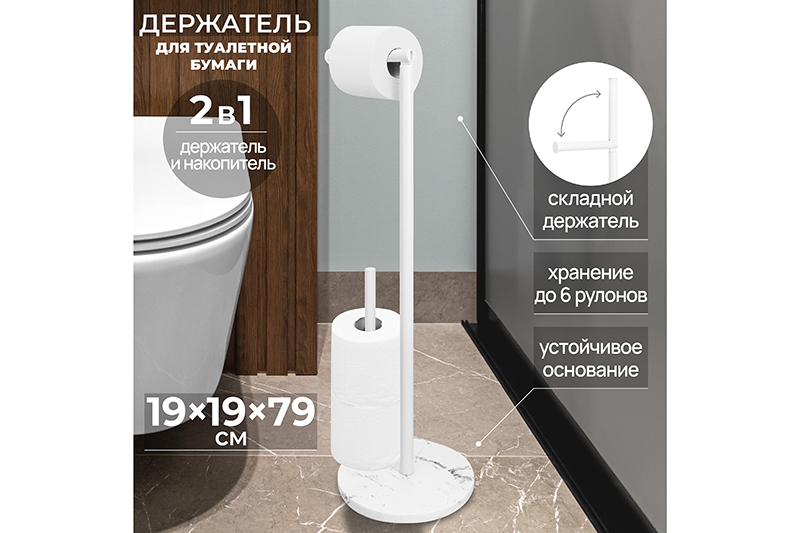 БЫЛО 1439 руб! Держатель для туалетной бумаги 19*19*79 см "Белый", металл/полирезин