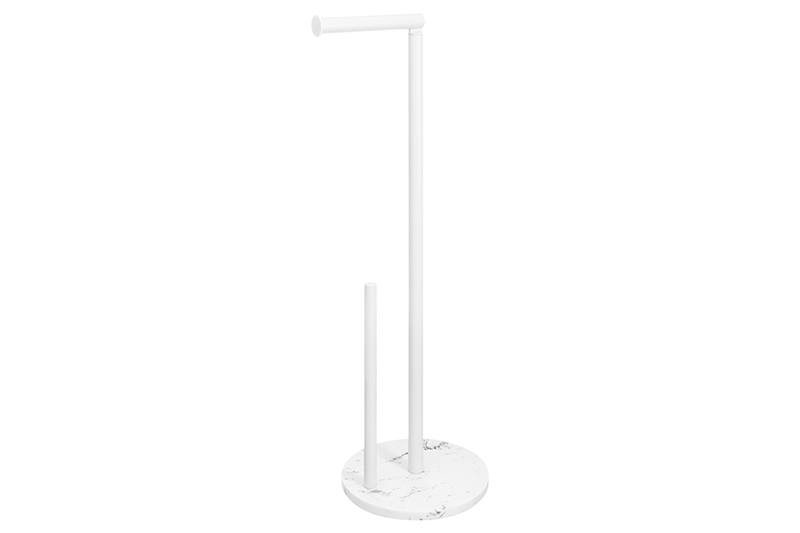 Держатель для туалетной бумаги ELCASA "Белый" выполнен из металла с пудровым покрытием, имеет круглое основание (подставку) из полирезина. С обратной стороны подставки есть маленькие антискользящие накладки круглой формы, которые гарантируют устойчивость держателя даже на очень гладкой поверхности. Вмещает до 6 запасных рулонов туалетной бумаги на дополнительном накопителе высотой 30 см. Полирезин – это современный материал, который славится своей долговечностью, устойчивостью к влаге и не выделяет вредных веществ. Горизонтальный подвес для рулона поднимается вверх. Полный размер держателя с поднятым вверх подвесом 19х19х79 см. Высота в собранном виде (с отогнутым горизонтально подвесом) – 66 см. Длина горизонтального подвеса для рулонов – 15 см. Диаметр каждой металлической трубы – 2 см. Белое полирезиновое основание украшено рисунком с имитацией мраморной поверхности. Подставка подойдет к любому интерьеру ванной или туалета, от минимализма до лофт. За счёт эргономичной формы кронштейну найдется место даже в небольшой кабинке туалета. Высокий органайзер устойчив на полу и не требует дополнительных действий при установке. Просто поставьте его на пол в санузел рядом с унитазом без всякого сверления, тогда все необходимые предметы гигиены будут под рукой. Не рекомендуется применять абразивные моющие средства. Поставляется в красочной картонной коробке. Бумагодержатель станет незаменимым помощником для создания комфорта в вашем доме и поможет держать все необходимые средства гигиены под рукой!