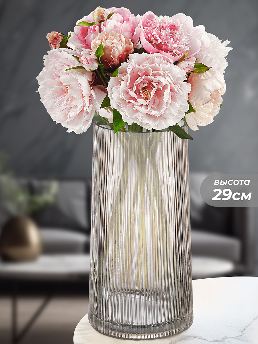 Ваза ручной выдувки от Elan Gallery послужит эстетичным и функциональным дополнением вашего интерьера. Размер ёмкости – 14,5х14,5х29,5 см, объём – 4 литра. Диаметр горлышка – 12 см. Выполнена из стекла. Полупрозрачная серая поверхность украшена частым рифлёным рельефом. Широкое утолщённое дно обеспечивает устойчивость вазы. Благодаря своей форме она вместит даже пышный букет или цветочную композицию. Подойдёт для букетов на длинных стеблях, а также декоративных ветвей. Изделие станет прекрасным элементом декора вашей гостиной, спальни или прихожей, наполнив дом атмосферой гармонии и уюта. Это отличный вариант для живых и искусственных веток и цветков, а также для сухоцветов. Поставьте в неё букет из свежих тюльпанов, пионов и роз. Расположите еловые или вербные веточки, чтобы привнести изысканности в квартиру, студию или загородный дом. Изящная ваза добавит утончённости и красоты в оформление любого праздника или вечеринки. Стеклянная ёмкость прекрасно смотрится даже без наполнения. Не рекомендуется применять абразивные моющие средства. Не подходит для использования в посудомоечной машине. Поставляется в картонной коробке. Красивая ваза – отличный подарок для тех, кто ценит стиль и практичность. Она прекрасно дополнит ваш интерьер и станет ценным подарком для родных, близких и коллег. В коллекции бренда Элан Галерея есть всё необходимое для эстетичного преображения дома, офиса и дачи!