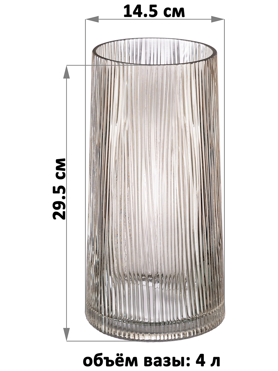 БЫЛО 1473 руб! Ваза 14,5*14,5*29,5 см 4 л, серая, стекло