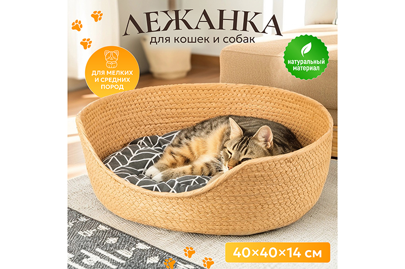 БЫЛО 1606 руб! Лежанка плетеная для кошек и собак 40*40*14 см, с подушкой