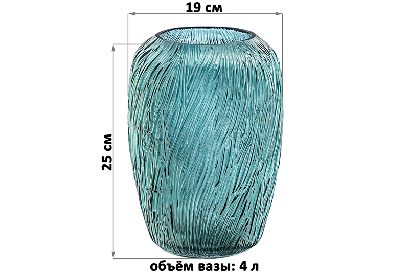 Ваза ручной выдувки от Elan Gallery объёмом 4 литра выполнена из стекла. Размер 19х19х25 см, внутренний диаметр горлышка 10,5 см. Ваза тёмно-зелёного цвета украшена рельефным узором, напоминающим по форме веточки деревьев. Подойдёт для живых и искусственных цветов, веток и сухоцветов. Стильная вазочка с ребристой поверхностью послужит элементом декора для вашего дома. В ней красиво будут смотреться букеты из любых цветов или веточек: роз, тюльпанов, вербы. Интерьерная ваза с полосатым рельефом украсит комнату даже без наполнения. Подойдёт для оформления декоративных композиций. Эргономичная форма позволит поставить в неё цветы с длинными стеблями. Разместите декоративную вазу на столе или полке, чтобы украсить спальню роскошным букетом пионов или другими растениями! На Новый год и Рождество поставьте в стеклянную вазочку еловые ветки с ёлочными игрушками для создания праздничной атмосферы. Не рекомендуется применять абразивные моющие средства. Поставляется в картонной коробке. Сделайте сюрприз своим близким или коллегам на любой праздник! Предметы декора – хороший подарок как мужчине, так и женщине. Красивый дизайн и функциональность понравятся каждому! Вазочка станет украшением домашнего интерьера и подчеркнёт красоту любого цветка. В коллекции бренда Elan Gallery можно найти много стильных товаров для дома. Здесь есть всё для создания уюта в квартире и на даче!