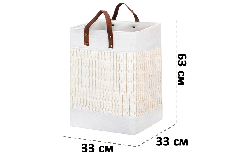 Корзина от ELCASA предназначена для организации практичной системы хранения ваших вещей. Размер изделия – 33х33х63 см. Выполнена из полиэстера. Этот материал хорошо держит форму и не мнётся. Полиэстер быстро сохнет при попадании влаги на поверхность и легко отмывается от загрязнений. Изделие оснащено прочными ручками-ремешками из полиуретана и белым декоративным покрытием, мягким и приятным на ощупь. Красивый лаконичный дизайн позволит органайзеру найти место в любой части вашей квартиры. В прихожей он поможет хранить шарфы, зонты, шапки и перчатки. В спальне компактно сложите в него тапочки, халаты, постельное бельё и небольшие подушки. Расположите его в детской комнате под одежду, игрушки или книги, в кухне – под кухонные полотенца или фартуки. Приспособьте под художественные принадлежности и приборы для рукоделия: альбомы, кисточки, нитки или пряжу. Послужит в качестве офисного инвентаря, позволяя держать под рукой папки или документы. Благодаря надёжным ручкам даже наполненный контейнер легко переносить. Большая корзинка создаст уют в любом помещении. Не рекомендуется применять абразивные моющие средства. В коллекции бренда ЭЛЬКАСА представлены разнообразные товары для дома, которые привнесут в ваш быт практичности и стиля.
