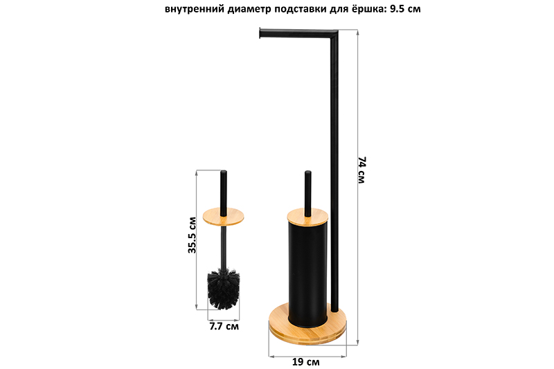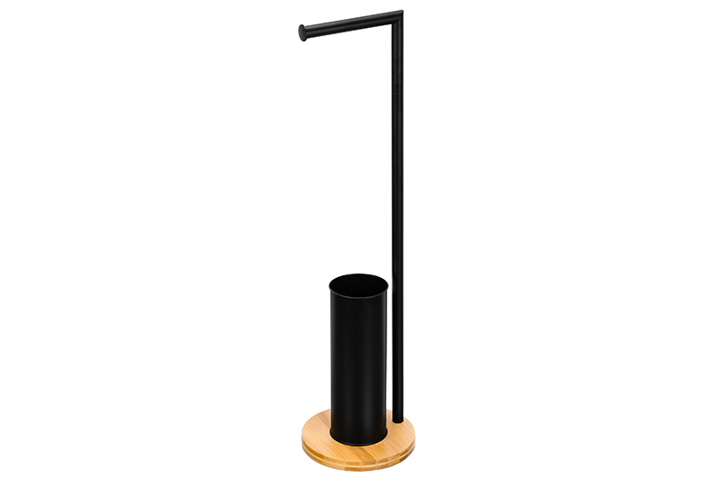 БЫЛО 2038 руб! Подставка для туалетной бумаги с ершиком 19*19*74 см "Черная" на бамбуковой подставке