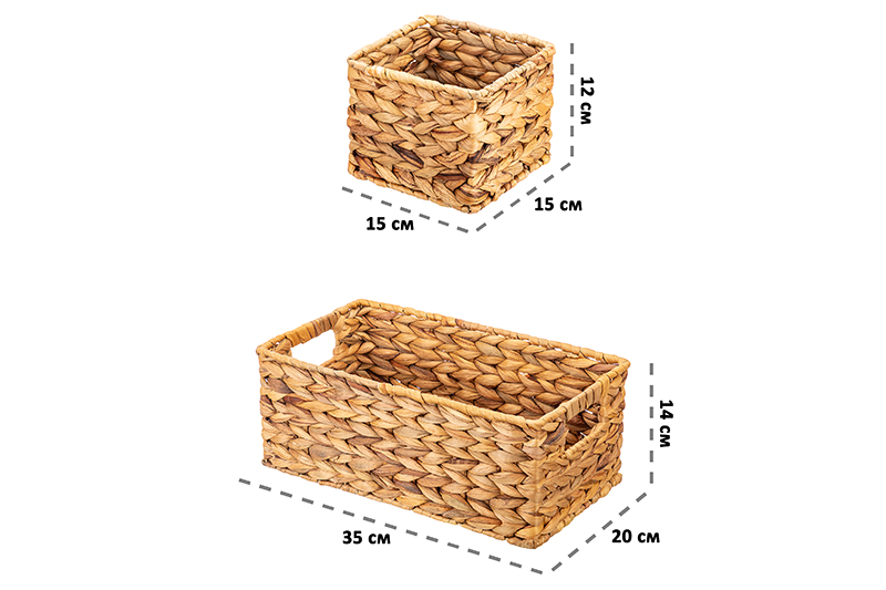 БЫЛО 2109 руб! Набор 3 плетеных корзинок 35*20*14 см, водный гиацинт