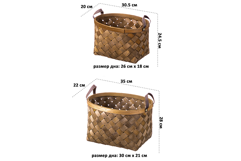 БЫЛО 2199 руб! Набор 2 корзин 1 корзинка 35*28*22 см, 1 корзинка 30,5*24,5*20 см, коричневый