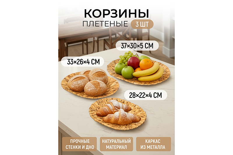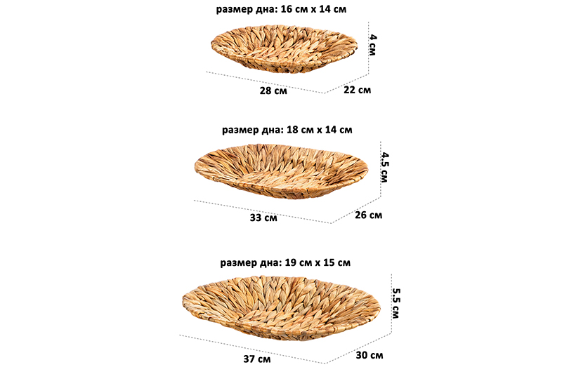 БЫЛО 2868 руб! Набор 3 плетеных корзин 37*30*5,5 см, 33*26*4,5 см, 28*22*4см, водный гиацинт