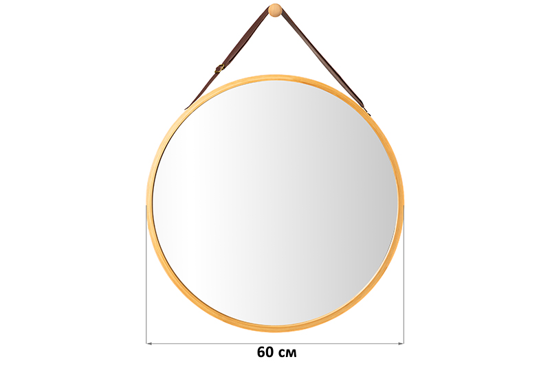Настенное зеркало на ремне от бренда ELCASA станет украшением домашнего интерьера квартиры или дачи, а также позволит следить за вашей красотой в течение дня. Размер 60х60х1,5 см, диаметр 60 см. Большое интерьерное зеркало круглой формы имеет прочный ремешок для подвешивания на стену или дверь, что позволяет без труда разместить его в спальне или прихожей. Длина ремня 70 см, ширина ремня 1,5 см. Рама выполнена из натурального бамбука. При необходимости зеркальце можно извлечь из деревянной рамки, чтобы заменить на новое. Это функциональная вещь, которую можно повесить на стенку над комодом, туалетным столиком или в коридоре над тумбочкой. Подвесное круглое зеркало позволит примерить любые аксессуары или головные уборы в вашей гардеробной, просто разместите его возле шкафа с одеждой. Подойдёт для офиса – благодаря прочному подвесу его можно расположить в любом помещении. В ванной комнате позволит проводить косметические процедуры и наносить макияж. Благодаря универсальному дизайну стильное зеркало гармонично дополнит интерьер в любом стиле – от классического до лофт, а также станет предметом его декора. Подойдёт для профессионального использования в кабинете парикмахера, визажиста и у любого другого специалиста салона красоты. Не рекомендуется применять абразивные моющие средства. Станет полезным подарком на праздник и всегда пригодится в быту. Поставляется в картонной упаковке. Удобный подвес, надежный крепеж и качественные материалы в составе обеспечивают долговечность изделия. В коллекции бренда ELCASA представлено много функциональных товаров для дома, которые позволят создать комфорт и уют в любом помещении!