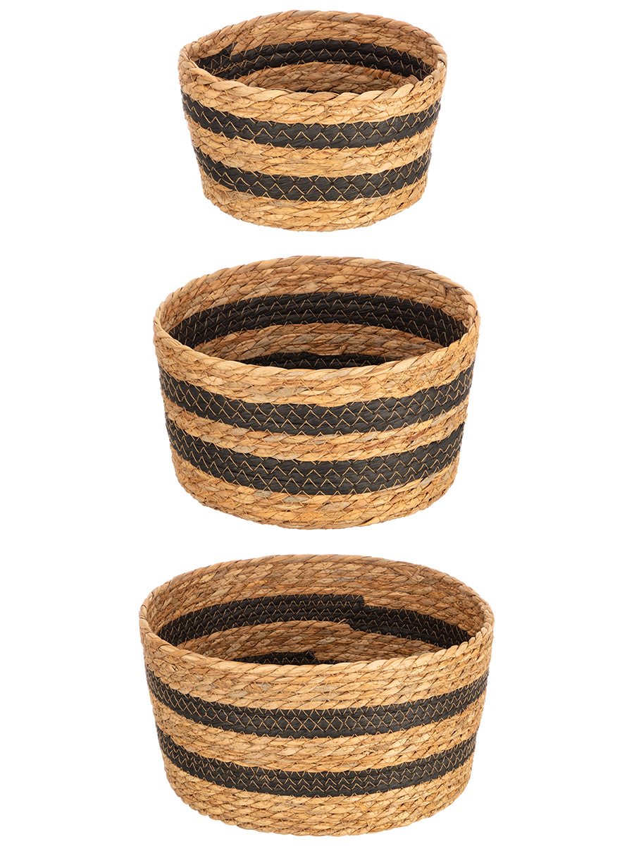Набор 3 плетёных корзин от ELCASA предназначен для организации системы хранения вещей в вашем доме. Включает изделия разных размеров: 19,5х19,5х12 см (размер без крышки – 18х18х10,5 см, размер дна – 14х14 см), 27х27х14,5 см (размер без крышки – 24,5х24,5х13 см, размер дна – 21х21 см) и 31,5х31,5х16 см (размер без крышки – 28,5х28,5х16 см, размер дна – 26х26 см). Прочные стенки корзинок представляют собой плетение из водного гиацинта – материала, устойчивого к влаге и перепадам температур. Такое преимущество позволяет использовать органайзеры на балконе или в ванной. Благодаря элегантному дизайну и универсальной прямоугольной форме они будут не только практичным, но и привлекательным элементом декора и стильным дополнением вашего интерьера. Эстетичные плетёные корзиночки послужат контейнерами для хранения мелочей и аксессуаров. Поставьте их на рабочий стол дома или в офисе в качестве настольных органайзеров, компактно разместив канцелярию или документы. Подойдут для хранения принадлежностей для художника, ниток для вышивания, швейного инвентаря и других предметов для творчества. На туалетном столике используйте их под косметику, лаки для ногтей, инструменты для макияжа и маникюра. На прикроватном столике храните в них ушные палочки, ватные диски и кремы для рук. Сложите в них провода, подвески, аксессуары и принадлежности для рукоделия. Крышки помогут защитить наполнение от пыли и грязи. Их легко снять благодаря ручкам-петелькам. Корзиночки с экзотичным и натуральным дизайном преобразят интерьер кухни или гардеробной. Они послужат уникальным декоративным дополнением вашей квартиры или дома. В коллекции бренда ЭЛЬКАСА представлены разнообразные товары для дома, которые привнесут в ваш быт практичности и стиля.