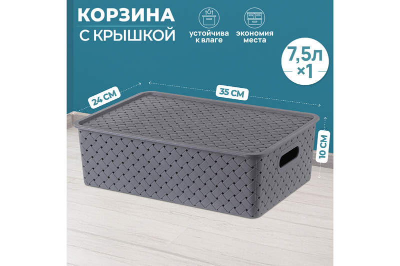БЫЛО 350 руб! Корзинка с крышкой 7,5 л 35*24,5*10,5 см "Береста" серая (модель 5221/18)