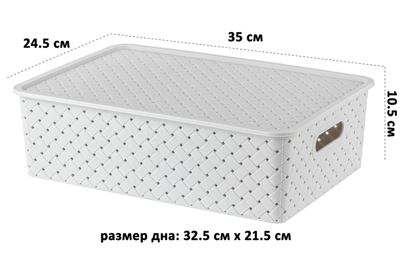БЫЛО 350 руб! Корзинка с крышкой 7,5 л 35*24,5*10,5 см "Береста" светло-серая (модель 5221/08)