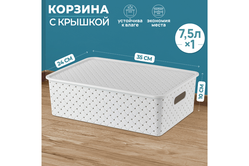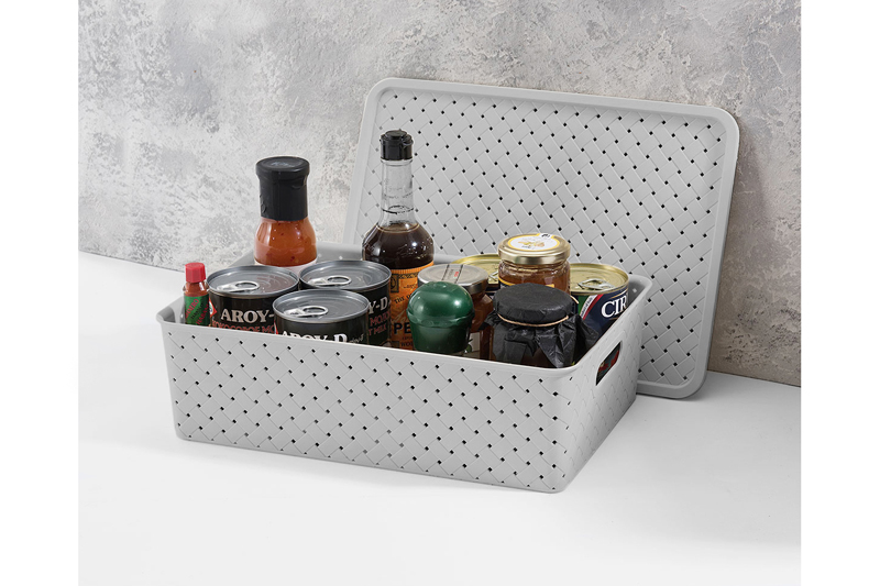 Корзина с крышкой от ELCASA имеет светло-серый цвет. Размер изделия – 35х24,5х10,5 см, объём – 7,5 литра. Размер дна – 32,5х21,5 см. Универсальный дизайн и благородный цвет добавят стиля вашему интерьеру. Органайзер выполнен из полипропилена и станет незаменимым помощником для организации порядка в гардеробной, в комнате или на кухне. Преимущество данного материала над обычным пластиком заключается в его лёгкости и безопасности для здоровья. Используйте пластиковый контейнер для хранения как овощей и фруктов, так и кухонных и хозяйственных принадлежностей. Храните в ней косметику, бытовую химию или моющие средства, расположив в шкафчике или на открытом пространстве. Декоративное плетение с отверстиями обеспечивает циркуляцию воздуха и предотвращает порчу продуктов от недостатка кислорода. Удобные ручки облегчат перенос даже наполненного изделия. Крышка надёжно защитит содержимое от попадания грязи и пыли. Корзину можно использовать для белья, полотенец, одежды и различных мелочей. Поставьте короб под раковину в ванной, возле стиральной машины или на полку. Разместите в детской комнате в качестве ящика для игрушек. Храните в ней садовые инструменты или используйте в гараже, на складе или на балконе под разнообразный инвентарь. Подойдёт для компактной перевозки вещей в багажнике машины. Не рекомендуется применять абразивные моющие средства. В ассортименте бренда ЭЛЬКАСА представлены корзинки разных объёмов, форм и цветов, что позволит собрать уникальный набор, отвечающий вашим потребностям. Создайте систему хранения в едином стиле и эффективно используйте каждый сантиметр пространства!
