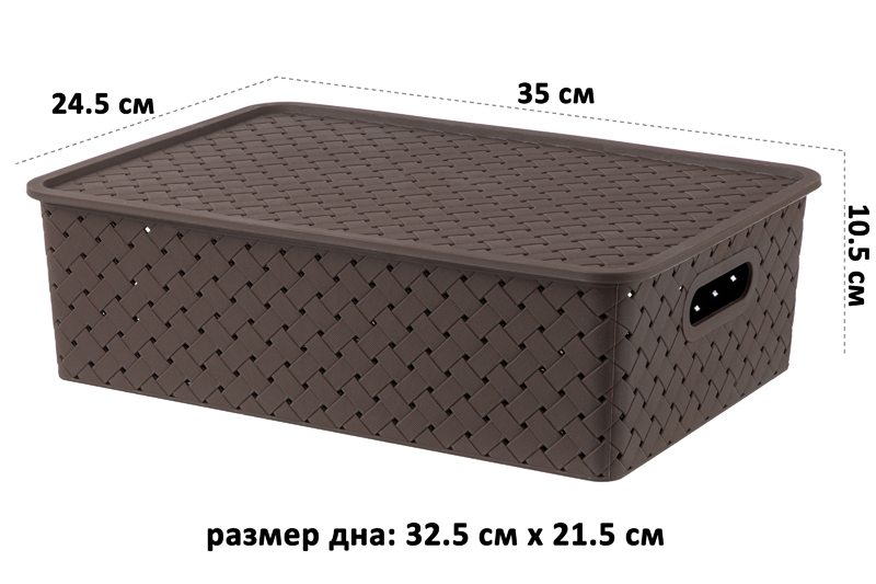 БЫЛО 350 руб! Корзинка с крышкой 7,5 л 35*24,5*10,5 см "Береста" темно-коричневый (модель 5221/01)
