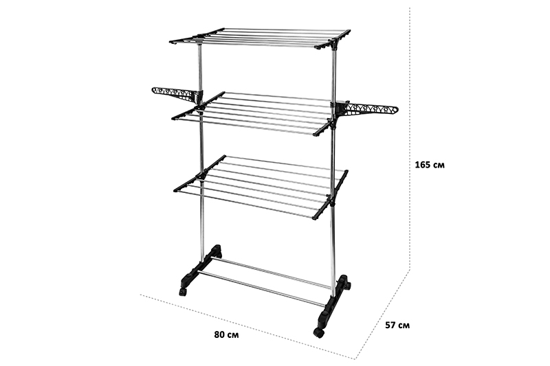 БЫЛО 3806 руб! Сушилка 3-х ярусная 80*57*165 см "Серебристо-черная" на колесиках