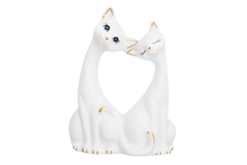 БЫЛО 440 руб! Фигурка декор. 9*4,5*12,5 см "Пара кошечек" белая, золото