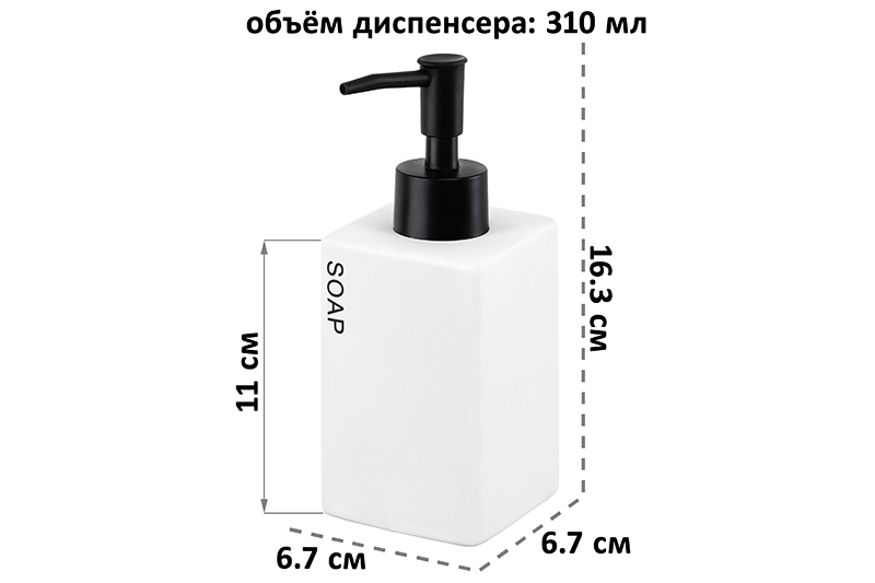 БЫЛО 476 руб! Диспенсер для мыла 310 мл 6,7*6,7*16,3 см "SOAP", белый