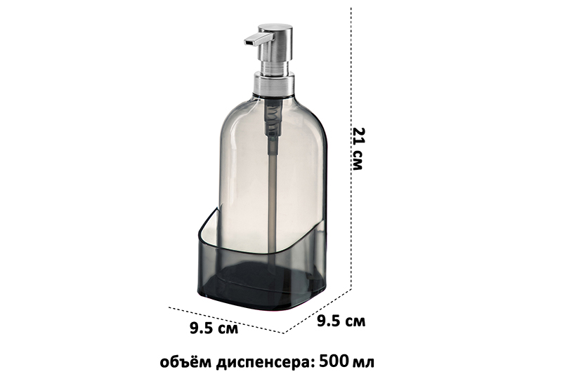 БЫЛО 620 руб! Диспенсер 500 мл 9,5*9,5*21 см "Серый" с нескользящей поверхностью
