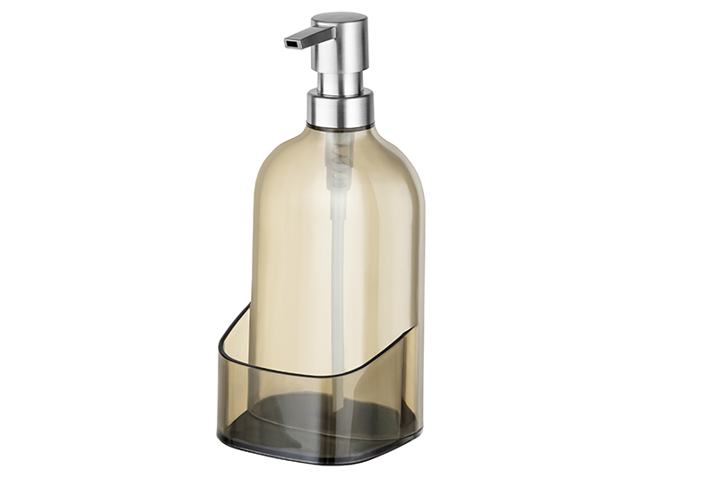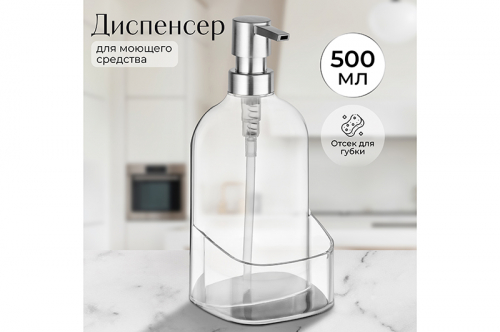 БЫЛО 648 руб! Диспенсер 500 мл 9,5*9,5*21 см прозрачный серый, с отделением для губки