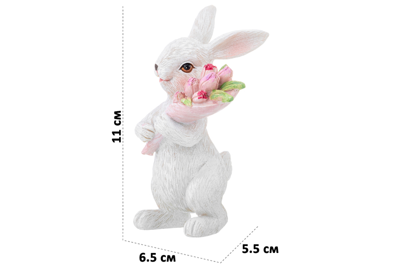 БЫЛО 652 руб! Фигурка декор. 6,5*5,5*11 см "Кролик с букетом"