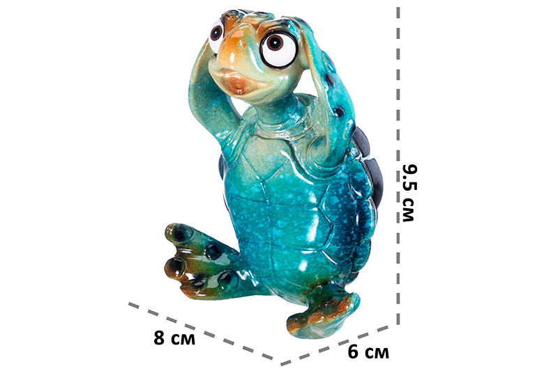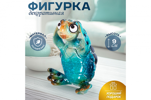 Декоративная фигурка Elan Gallery "Голубая черепашка" размером 8х6х9,5 см способна преобразить любое помещение. Статуэтка в виде забавной бирюзовой черепахи выполнена из полирезина и покрыта глазурью. Черепашка игриво прикрывает свои ушки, как будто намекая: "Ничего не слышу!" Полирезин – это современный материал, который славится своей лёгкостью, устойчивостью к влаге и солнечным лучам. Он не выделяет вредных веществ и не имеет запаха. Полирезин легко поддается обработке, поэтому изделия из него славятся своей реалистичностью и проработанными деталями. Панцирь черепахи имеет насыщенный окрас, напоминающий поверхность сине-голубого камня. За счёт окраса и гладкой глазурованной поверхности создаётся ассоциация с бирюзой, что придаёт изделию из полирезина особого благородства. Привнесите эстетику в интерьер своей квартиры с помощью красивых мелочей! Настольная фигурка станет оригинальным элементом декора и принесёт в дом радость и уют. Она украсит интерьер гостиной или спальни и создаст тёплую атмосферу. Превратите вашу кухню или дачу в уютное место благодаря этому сувениру! Вы можете разместить игрушку на полке, столе или создать декоративную композицию вместе с другими украшениями на камине. Она поможет украсить ваше рабочее место в офисе и сделает кабинет уютнее! Не рекомендуется применять абразивные моющие средства. В коллекции бренда Элан Галерея представлено много товаров для дома, предметов декора и сувенирной продукции для создания уюта в любом пространстве. Статуэтки милых животных – это всегда приятный сюрприз для мальчика или девочки. Такой сувенир уместен для любого возраста. Фигура станет чудесным подарком на долгую память в честь любого праздника. Пусть милая фигурка станет символом вашей дружбы и создаст хорошее настроение взрослым и детям!