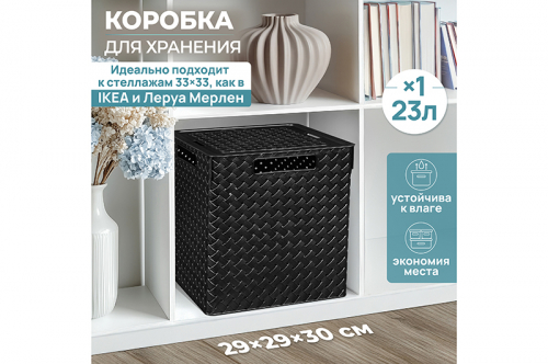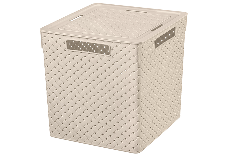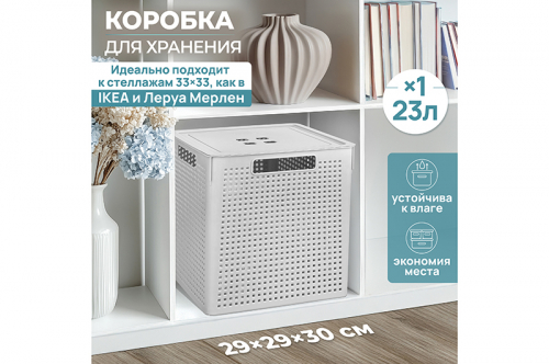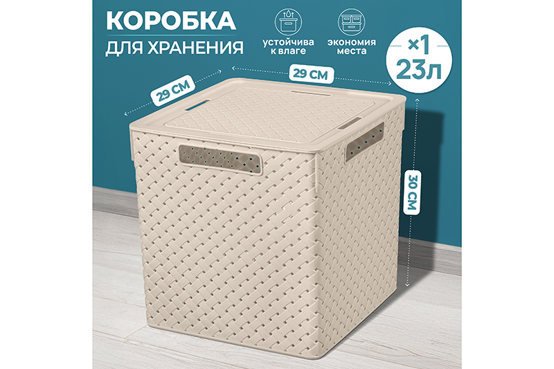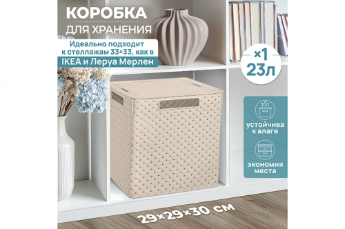 БЫЛО 712 руб! Коробка для хранения квадратная 23 л 29,4*29,4*30,1 см "Береста" с крышк(латте) (модель 6823120)