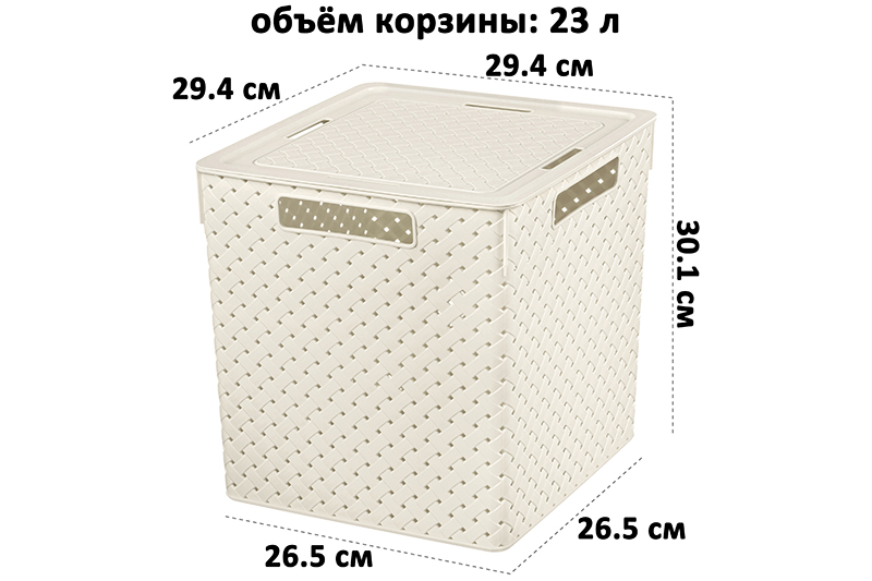 БЫЛО 712 руб! Коробка для хранения квадратная 23 л 29,4*29,4*30,1 см "Береста" с крышк(слон. кос) (модель 6823126)