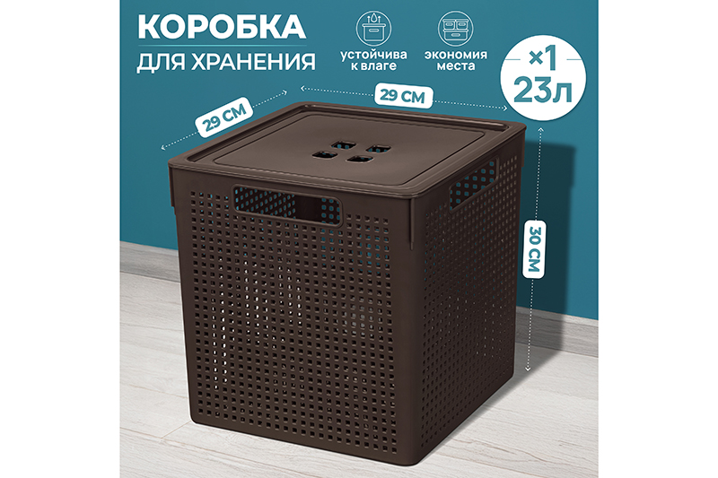 БЫЛО 712 руб! Коробка для хранения квадратная 23 л 29,4*29,4*30,1 см "Лофт" с кр.(темно-коричневая)(модель 6923105