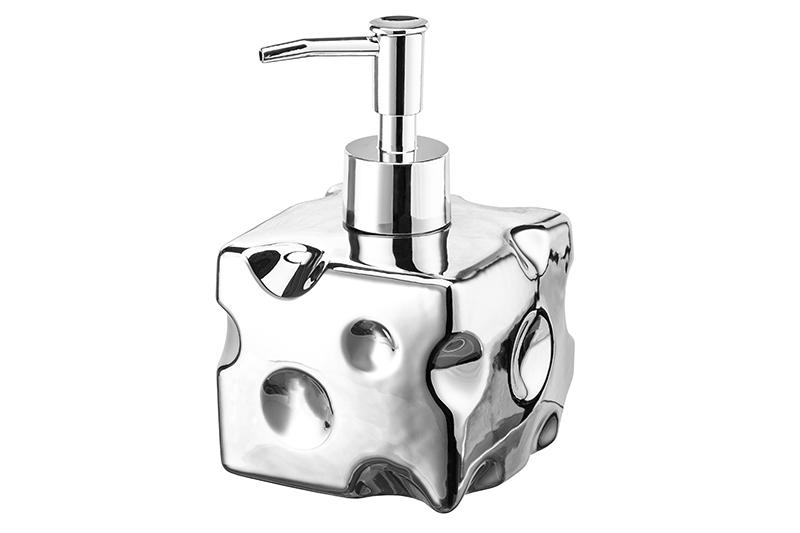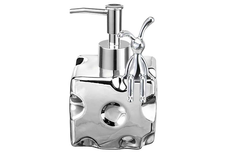 Настольный диспенсер в оттенке металлик (серебряный) от бренда Elan Gallery подойдёт для хранения жидких моющих и очищающих средств. Размер изделия – 9х9х14 см, объём – 380 мл. Квадратная ёмкость в форме сыра выполнена из керамики, её высота без пластикового дозатора 7,8 см. Поверхность имеет декоративный рельеф, имитирующий сырные дырочки. Дозатор на прямоугольной ёмкости выполнен из пластика. Он герметичен и надёжно предотвращает проливание. В комплекте поставляется декоративная фигурка кролика и кусочек плотного двустороннего скотча, чтобы закрепить зайку на серебристом диспенсере. При необходимости бутылочку можно использовать без фигурки зайца, он съёмный. Благодаря красивому дизайну и необычной форме баночка найдёт место в любой части вашей квартиры. Заполните ёмкость жидким мылом или средством для посуды и расположите на кухонной раковине. В ванной используйте флакон под гель для душа или шампунь. Универсальную бутылочку можно приспособить под антисептик. Поставьте её на рабочий стол в своей комнате или кабинете, чтобы дезинфицирующее средство было под рукой. Не рекомендуется применять абразивные моющие средства. Не подходит для использования в посудомоечной машине. Для очистки изделия воспользуйтесь тёплой водой с добавлением моющего средства. Поставляется в картонной коробке. Декоративный диспенсер от бренда Элан Галерея станет отличным подарком для родных и близких. Это не только практичный, но и эстетичный аксессуар для поддержания гигиены, который станет украшением интерьера!