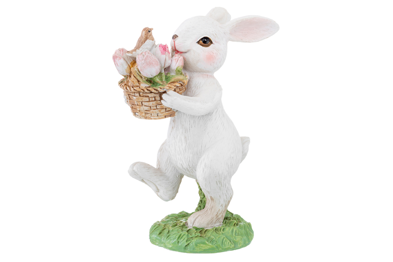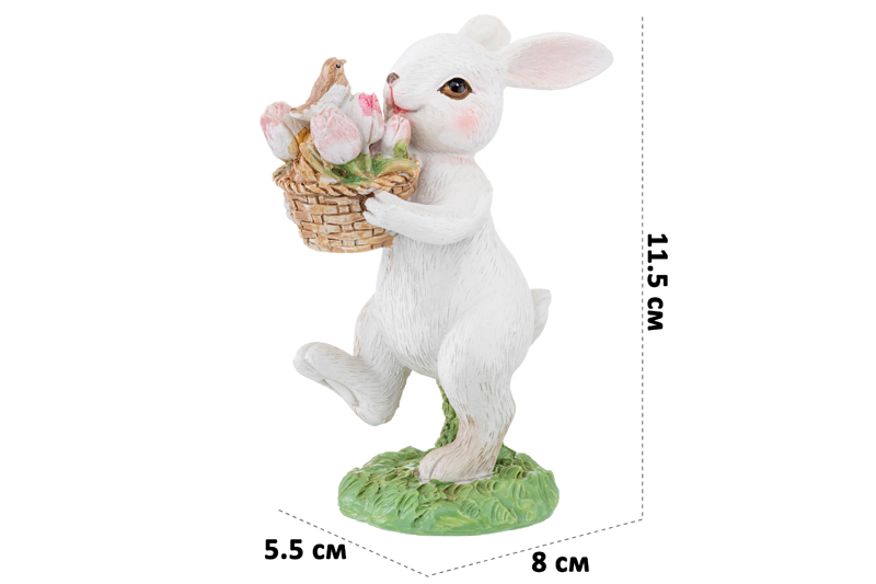 БЫЛО 767 руб! Фигурка декор. 8*5,5*11,5 см "Кролик с корзинкой тюльпанов"